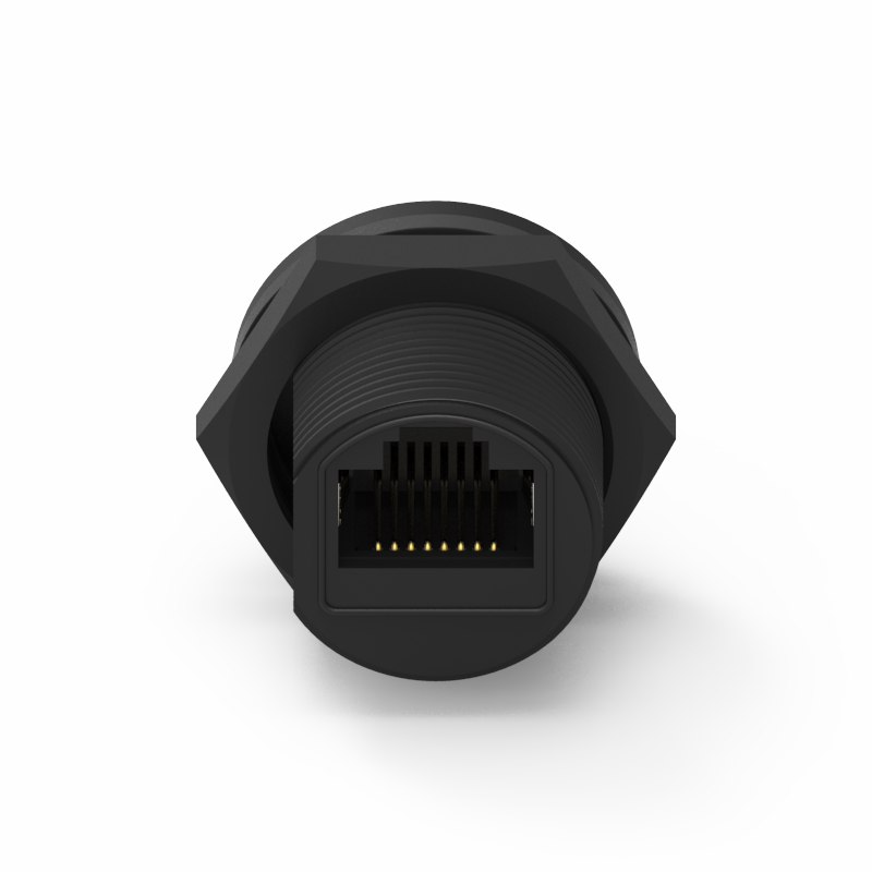 RJ45 母頭 8PIN 前鎖插板式防水連接器(螺牙式)/連接器